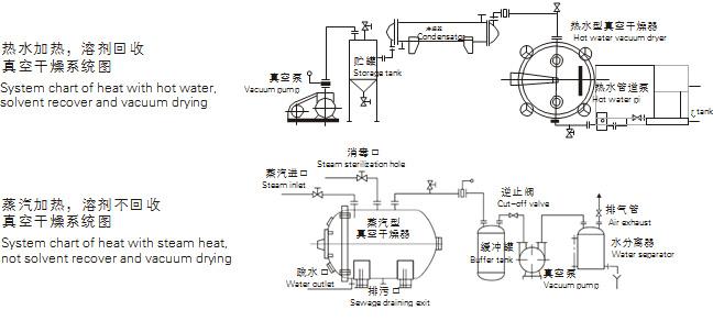 注:如采用冷凝器,物料中的溶劑可通過冷凝器加以回收;如采用SK系列水環真空泵,可不用冷凝器,節省能源投資。