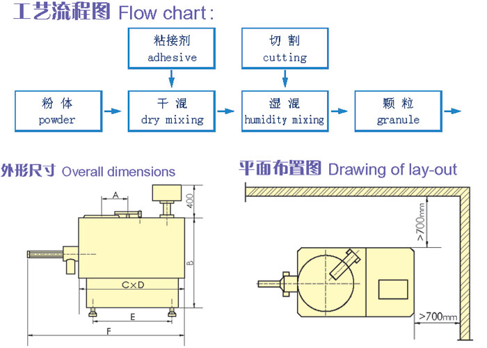 ■粉體物料與結合劑在圓筒形容器中由底部混合槳充分混合成濕潤軟材,然后由側置的高速粉碎槳切割成均勻的濕顆粒。
